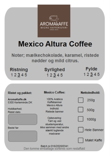 Mexico Altura EP er en arabica‑kaffe fra de mexicanske højder, hvor klima og terroir giver optimale betingelser for langsom modning og udvikling af komplekse aromaer. Altura betyder “højde” – og netop højden er med til at skabe den elegante balance mellem syrlighed, sødme og fylde.
